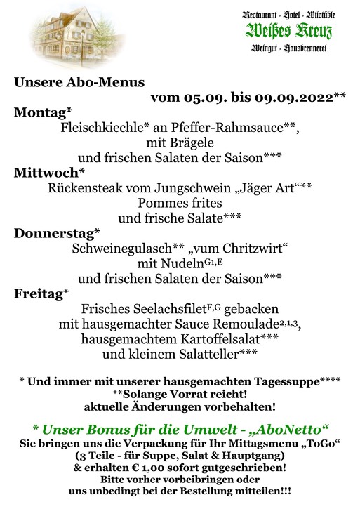 *Kurzfristige Änderungen des Angebotes behalten wir uns vor!